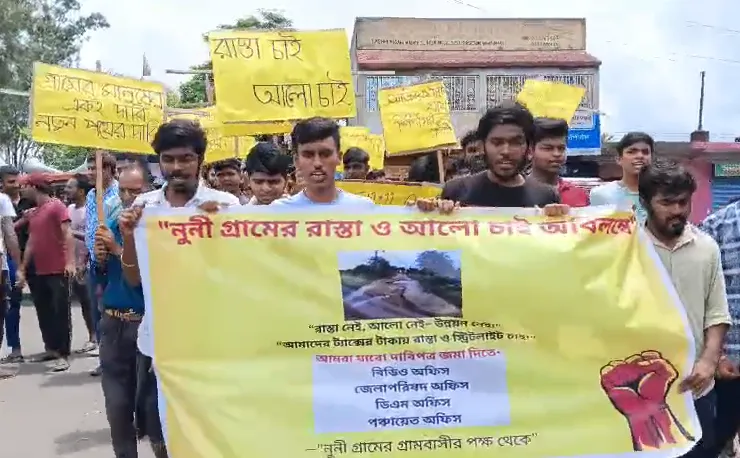 प्रदर्शन के दौरान, ग्रामीणों ने "हमें पानी दो, हमें सड़क दो, हमें रोशनी दो" जैसे नारे लगाए और नूनी ग्राम पंचायत को एक ज्ञापन सौंपा। इसमें तीन मुख्य माँगें शामिल थीं: नियमित पेयजल आपूर्ति, जर्जर सड़कों की शीघ्र मरम्मत और रात में पर्याप्त संख्या में स्ट्रीट लाइटों की व्यवस्था।