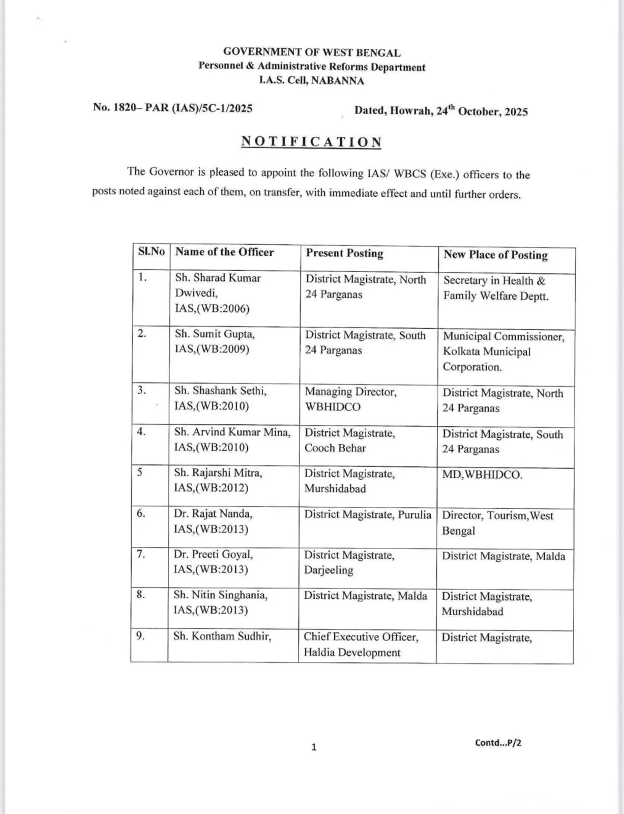 एएनएम न्यूज़, ब्यूरो : SIR से पहले पश्चिम बंगाल सरकार ने बड़ा प्रशासनिक फेरबदल करते हुए एक ही दिन में 67 आईएएस और 460 राज्य सिविल सेवा अधिकारियों का तबादला कर दिया है। /anm-hindi/media/post_attachments/50518ef3-1c0.jpg)