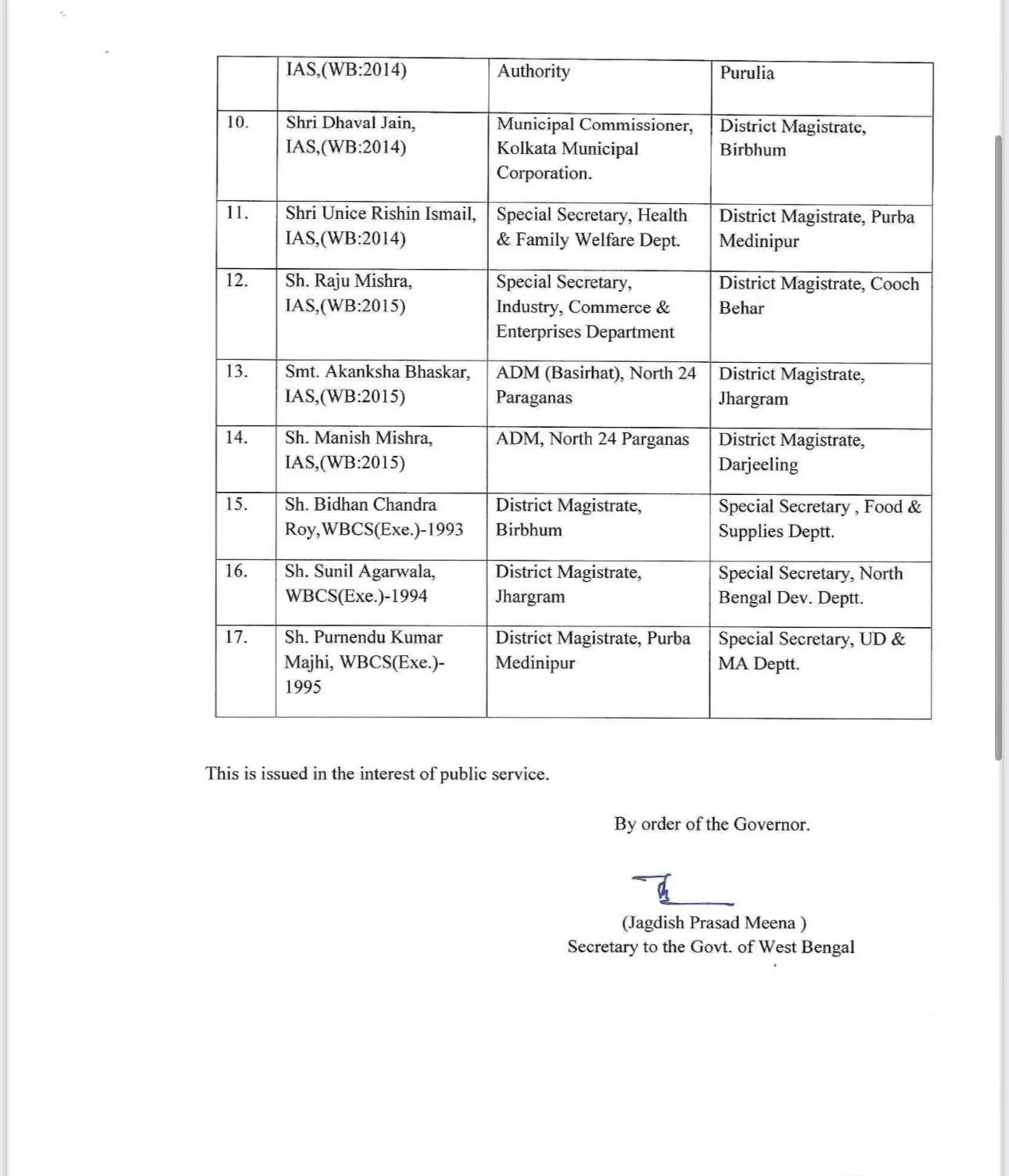 इस फेरबदल में 14 ज़िला मजिस्ट्रेटों के साथ-साथ कई नगर निगम और बुनियादी ढाँचा अधिकारियों का तबादला भी शामिल है। जानकारी के मुताबिक, इनमें से उत्तर 24 परगना, दक्षिण 24 परगना, कूच बिहार, दार्जिलिंग, पुरुलिया, मालदा, बीरभूम, झारग्राम और पूर्व मेदिनीपुर शामिल हैं। /anm-hindi/media/post_attachments/603ad3a4-91f.jpg)
