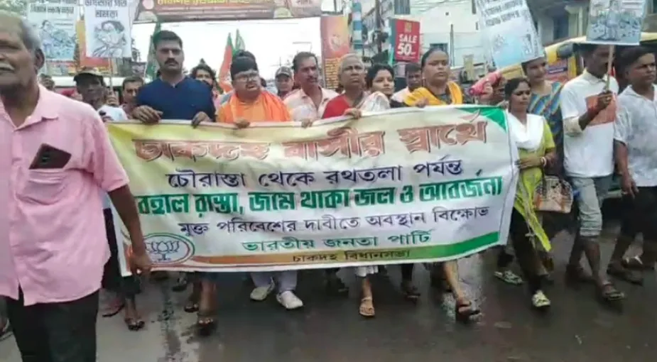 एएनएम न्यूज़, ब्यूरो : भाजपा विधायक बंकिम घोष ने अपने ही क्षेत्र में तैराकी की। चकदा विधानसभा के विधायक बंकिम घोष ने अपने ही क्षेत्र में, यानी चकदा बस स्टैंड से राष्ट्रीय राजमार्ग संख्या 12 की ओर जाने वाली सड़क पर तैराकी की। यह चकदा सड़क हर साल बरसात के मौसम में जलमग्न हो जाती है। इस व्यस्त सड़क पर जलभराव के कारण दैनिक यात्रियों को अपनी यात्रा में काफी कठिनाइयों का सामना करना पड़ता है। कभी-कभी, विभिन्न राजनीतिक दल पानी निकालने की मांग करते हैं और हमेशा की तरह, तातला 2 पंचायत मोटर लगाकर पानी निकालने की व्यवस्था करती है। /anm-hindi/media/post_attachments/63274226-43c.jpg)